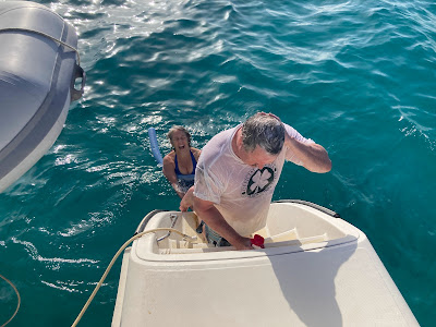 As we determined that the shortness of the visit and the state of the seas ruled out a cruise with these distinguished guests, we shared them with our other friends during walks and lunches. We also took them for three swims to our favourite little snorkelling spot between Princess Margaret and Lower Bay beaches. All in all, we’d say they adapted to the life on Cat Tales rather well. Way too soon, they were gone.